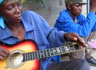 Чернокожая женщина необычно и ловко играет на гитаре