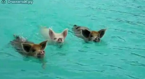 Между прочим, свиньи и поросята очень хорошо ориентируются в воде и аккуратно плавают - вот, смотрите сами