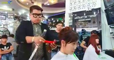 Странный инструмент использует парикмахер в своём причёсочном искусстве - настоящую катану: вот клиентам эмоций-то сколько обеспечено!