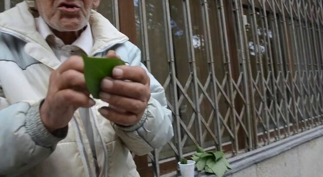 Во Львове дедушка продемонстрировал, как можно играть разные звуки на случайных листочках, сорванных с дерева - наверное, это развлечение из его детства