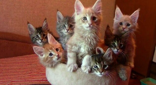 Котята породы мейнкун призваны заменить любителям домашних животных гибрид собаки и кошки - они очень крупными вырастают, словно собаки, и вместе с этим похожи по характеру на кошек