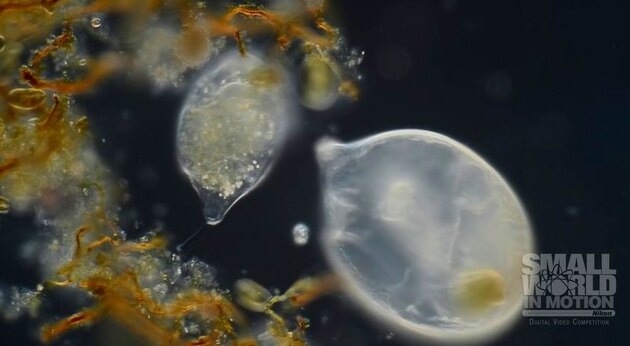 Увлекательный сюжет из микроскопического природного мира, в котором происходят вот такие фантастические вещи: инфузория трахелиус поглощает внутрь себя инфузорию кампанелла