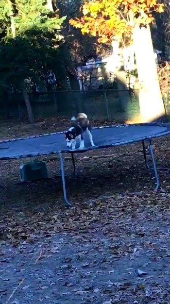 Забавный сюжет про хаски, которая очень игриво вела себя на батуте, стараясь прыгать на нём и удерживать равновесие при этом, а хозяева с улыбкой её тайком снимали на видеокамеру...