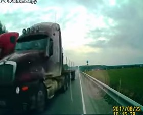 Очень эмоциональное и волнительное видео с трассы, где безумный водитель фуры решил обогнать впереди идущий грузовик, но не учёл, что ему навстречу движется легковой автомобиль, пассажиры и водитель которого пережили второе рождение