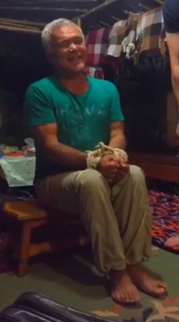 Интересный и немного загадочный фокус продемонстрировал мужчина, руки и ноги которого вроде как на вид крепко связаны толстой канатной верёвкой