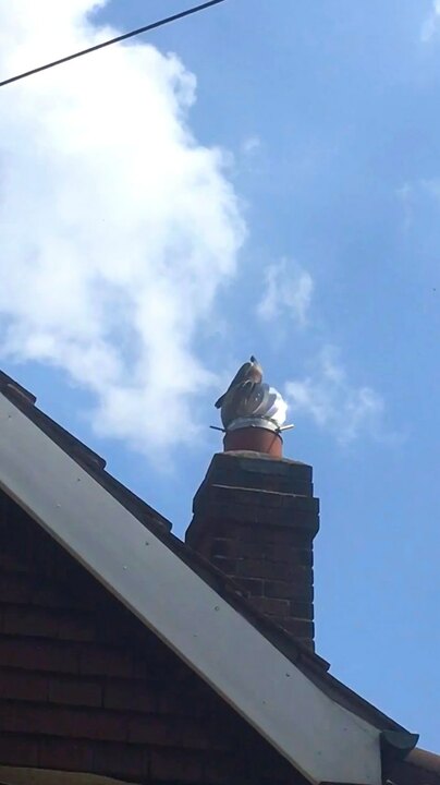 Голубь нашёл отличное место для интересного и весёлого времяпровождения, на крыше человеческого жилого дома птица обнаружила своеобразную карусель для себя любимой
