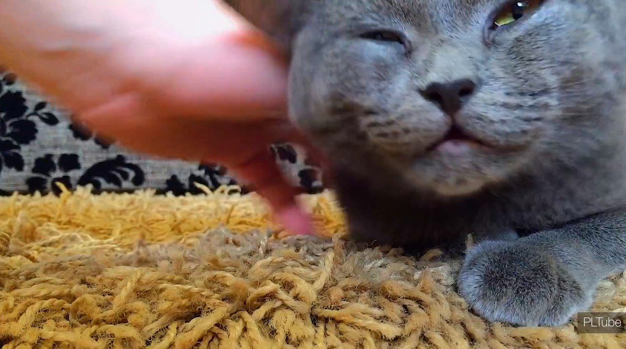 Смешной ролик про домашнюю кошку, которая буквально смеётся от удовольствия, когда хозяева гладят её руками по голове и за ушком - у питомца получается издавать очень забавный звук