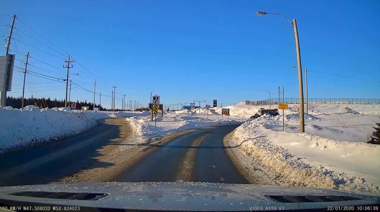 Интересный и познавательный сюжет из Канады, где в этом году выпало довольно много зимних осадков - водитель едет по дороге, расчищенной от снега, где порой на обочине встречается масса сугробов величиной, которая может потягаться с высотой грузовиков