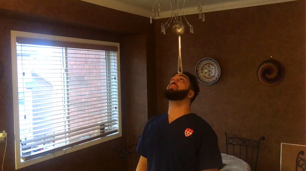 Наверное, этот мужчина давно тренируется удерживать на лбу различные вещи, от половников до разложенных во всю длину гладильных досок, поэтому теперь он может быть главным героем вот таких зрелищных и эффектных видео сюжетов...