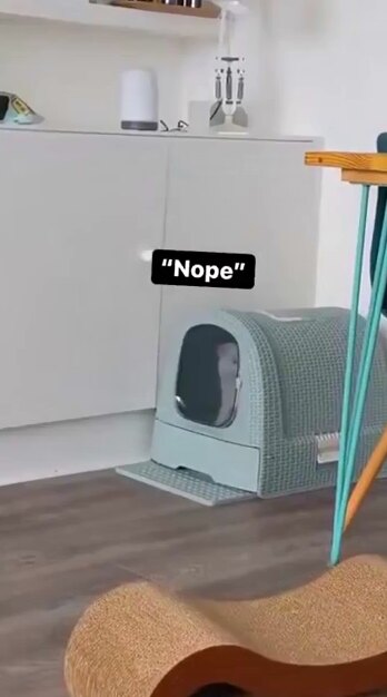 Видно, котяра захотел вылезти из своего домика, купленного для него хозяевами, да настолько сильно, что голова отказалась думать, возникло реактивное стремление выскочить оттуда, во что бы то ни стало. В результате питомец выбрал невольно самый трудный для этого путь