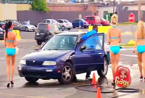 Отличный весёлый розыгрыш от европейцев из серии под названием "Смеха ради" про девушек в бикини, предлагающих помыть вашу машину